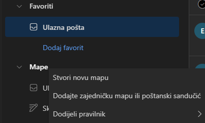 Zajednički poštanski sandučić na popisu mapa u web-aplikaciji Outlook
