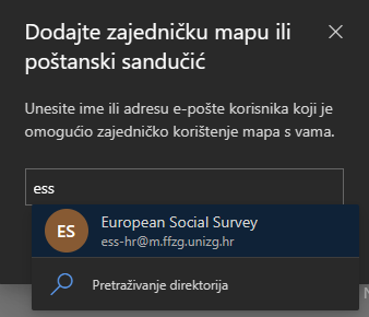 3. U dijaloškom okviru upišite naziv zajedničkog poštanskog sandučića u kojem ste član a zatim kliknite Dodaj.