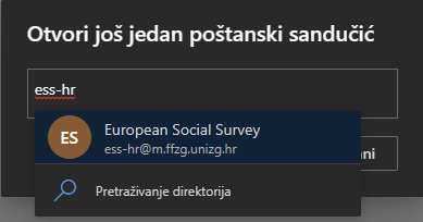 2. Pojavljuje se prozorčić „Otvori još jedan poštanski sandučić“ u kojem je potrebno unijeti ime sandučića koji želite otvoriti.