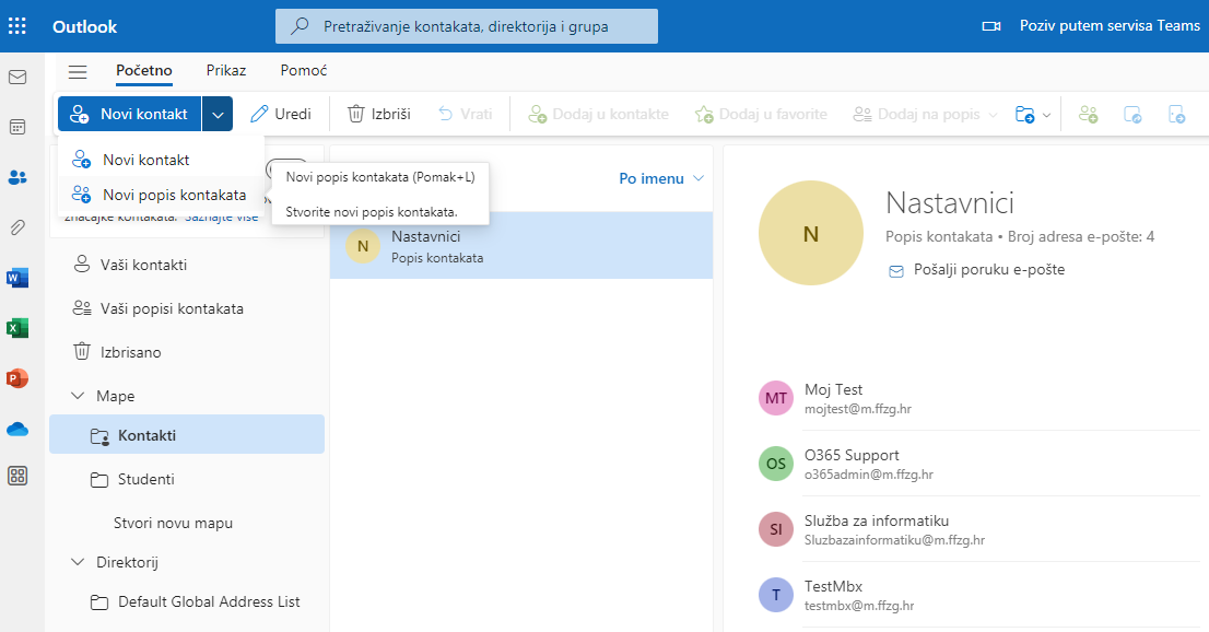 Uredite kontakte i popise kontakata - Outlook online